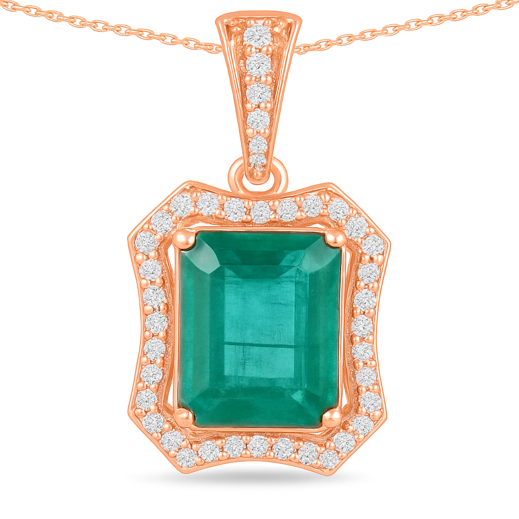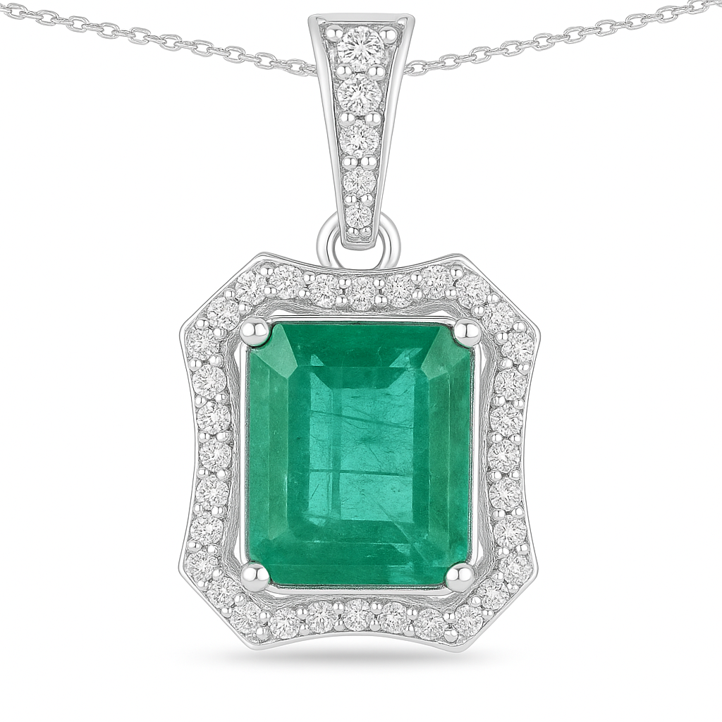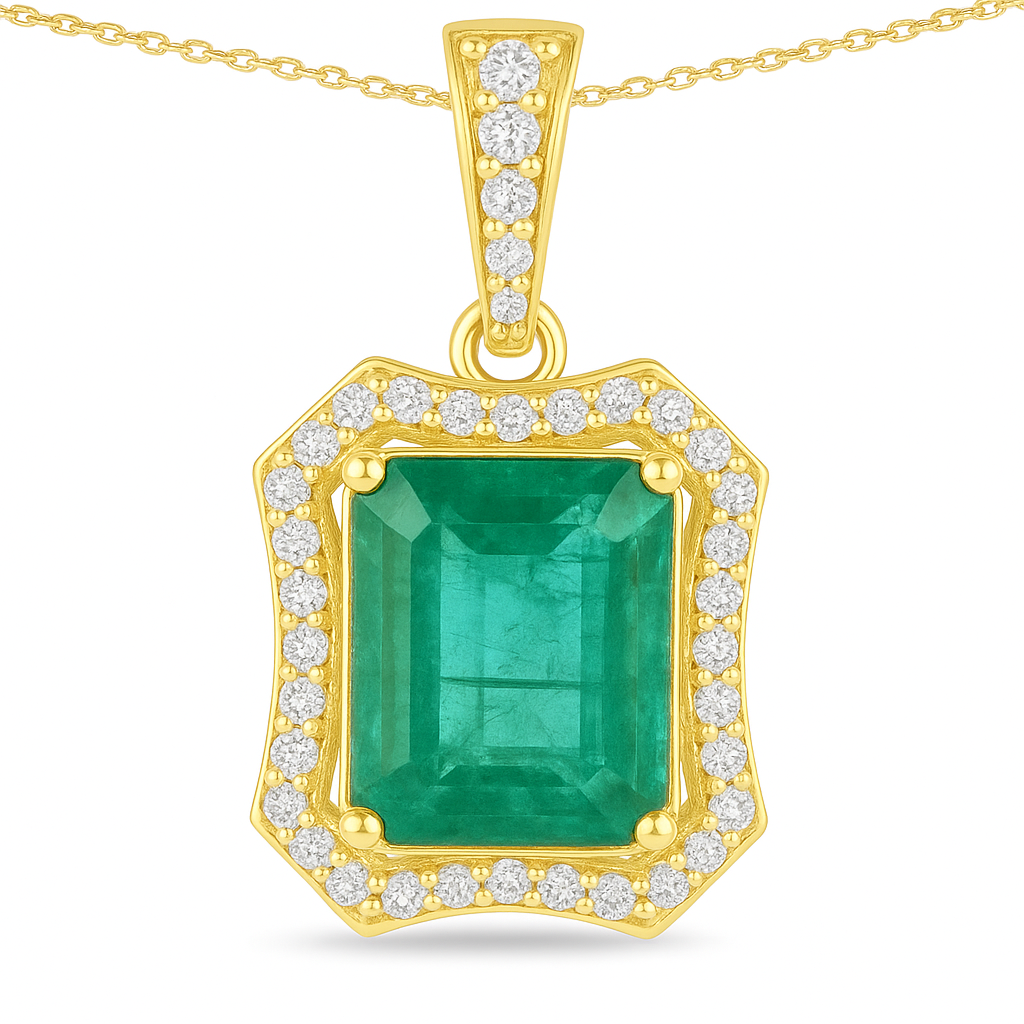 Set in your choice of 14K yellow, white, or rose gold, the emerald is embraced by a halo of sparkling lab-grown diamonds, accentuating its rich color while offering an ethical and environmentally conscious touch. The widened, diamond-set bail adds a modern flourish to this vintage-inspired silhouette, creating a pendant that feels both regal and wearable.