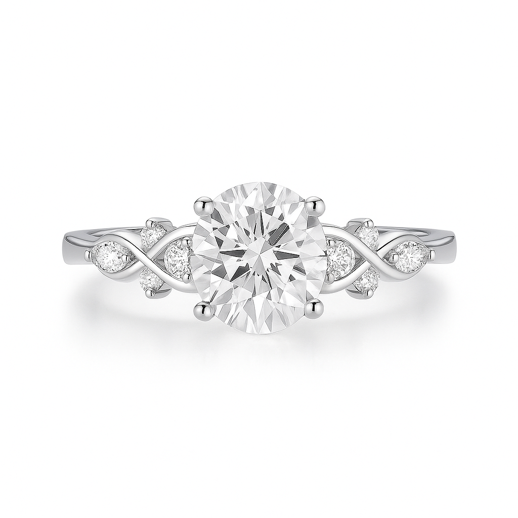 Sterling silver with moissanite, a graceful and affordable first step into your forever.
