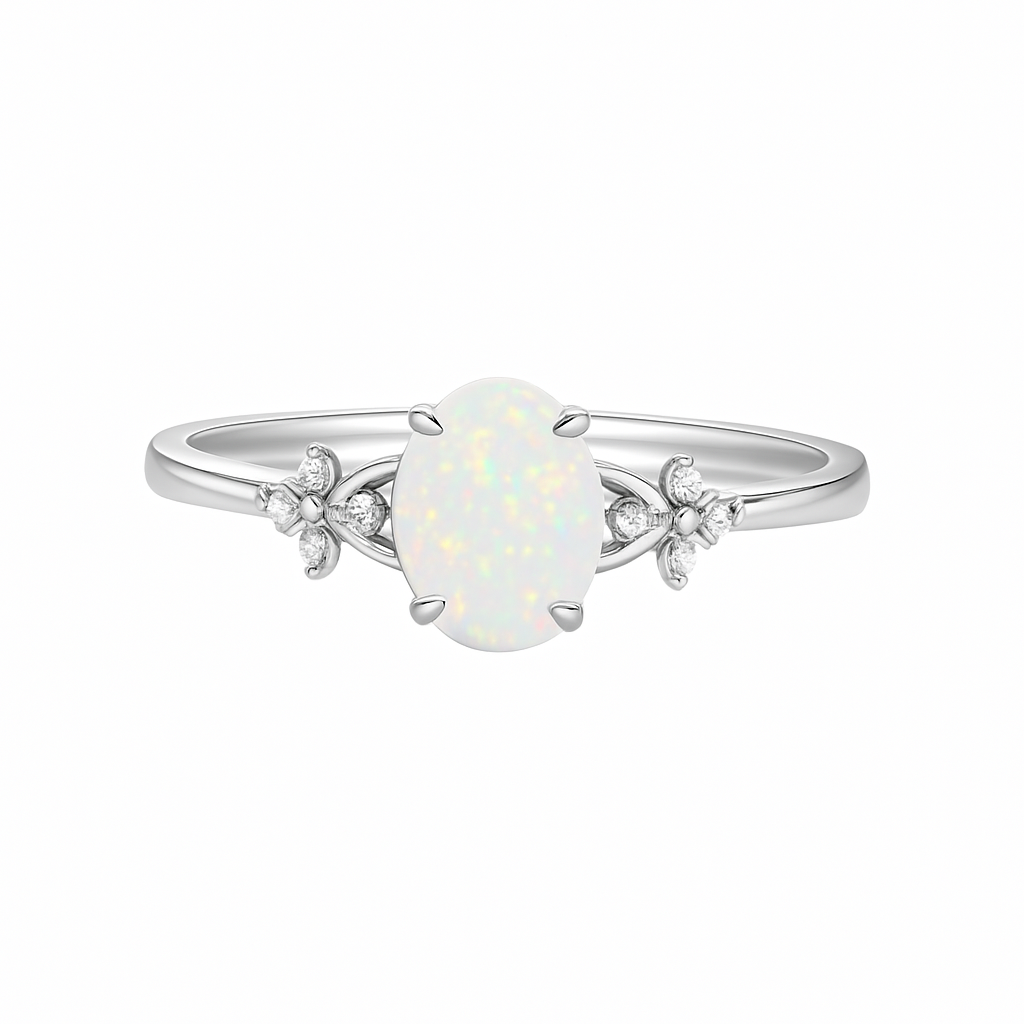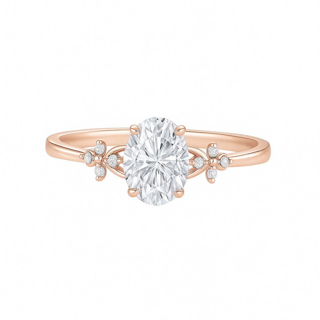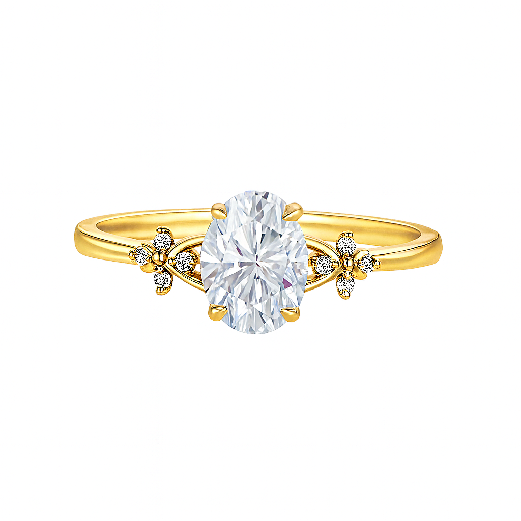 The Eliora ring captures the spirit of a hopeful first chapter—graceful, radiant, and full of promise. At its heart glows an oval-cut diamond, symbolizing clarity and commitment. It’s framed by tiny floral accents, each petal set with shimmering stones, like blossoms opening to a new love story. Crafted in solid gold—available in white, yellow, or rose—this dainty silhouette is both refined and deeply meaningful.