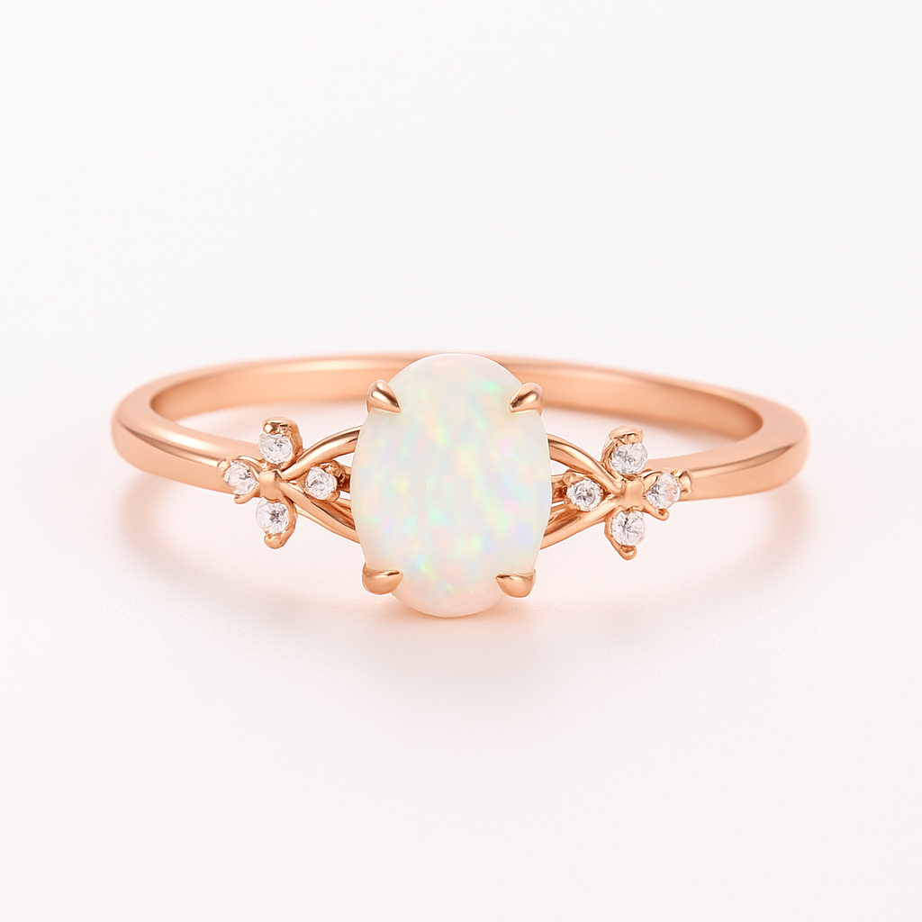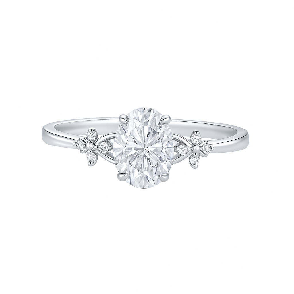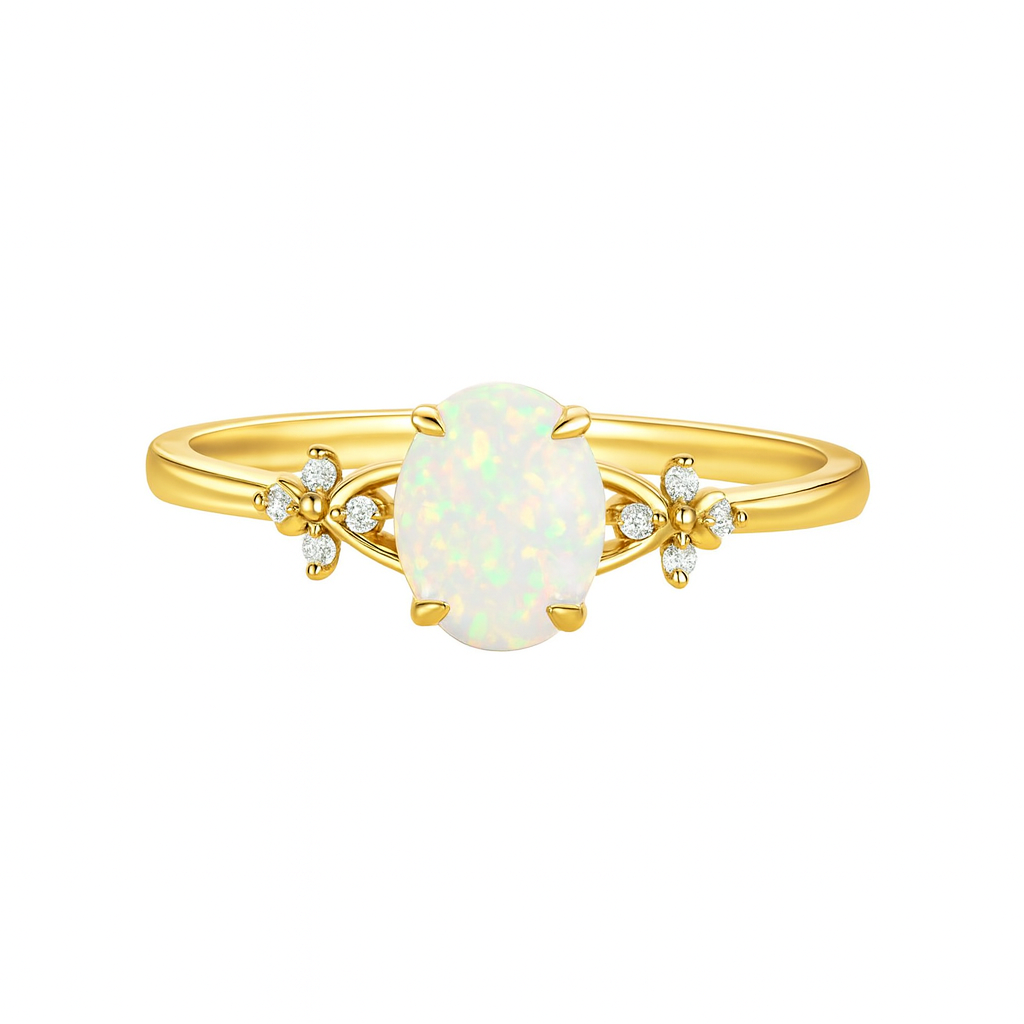The Eliora ring captures the spirit of a hopeful first chapter—graceful, radiant, and full of promise. At its heart glows an oval-cut diamond, symbolizing clarity and commitment. It’s framed by tiny floral accents, each petal set with shimmering stones, like blossoms opening to a new love story. Crafted in solid gold—available in white, yellow, or rose—this dainty silhouette is both refined and deeply meaningful.