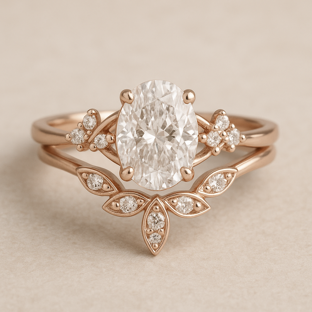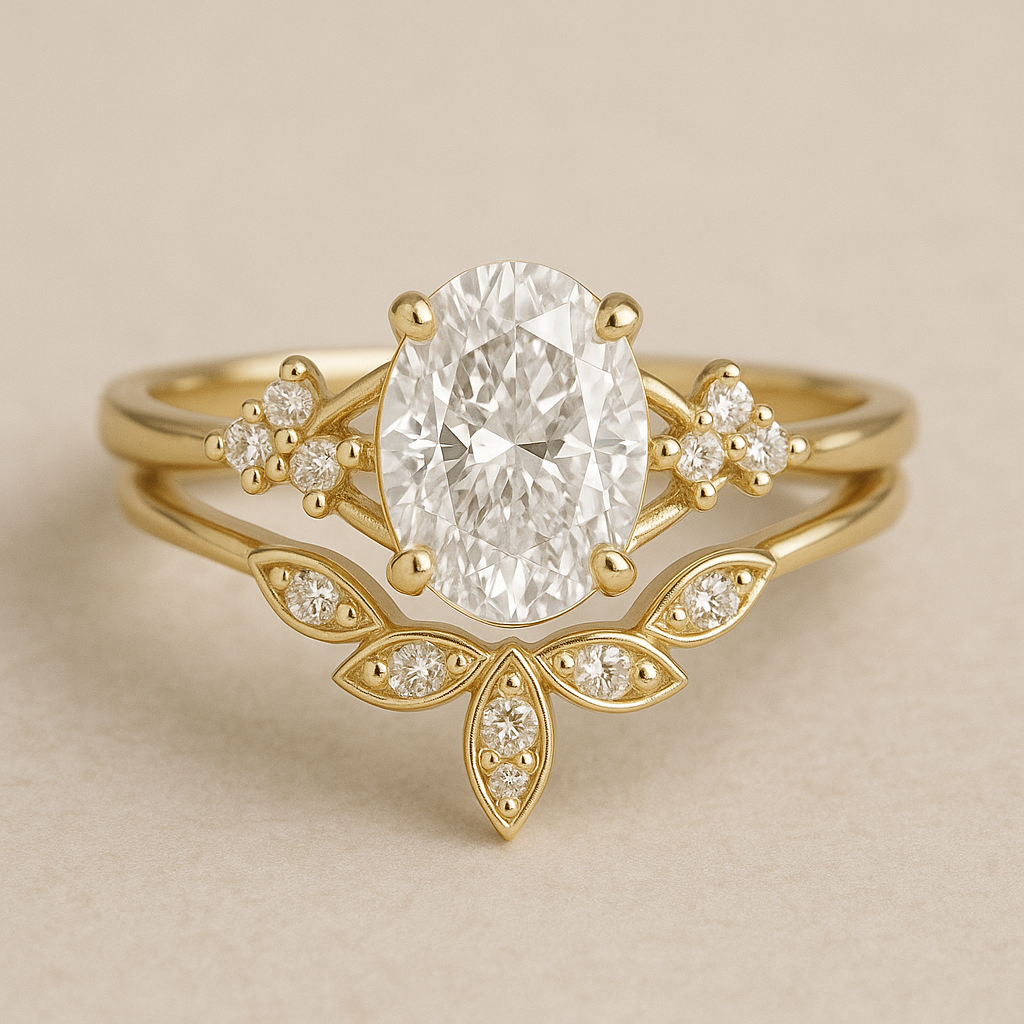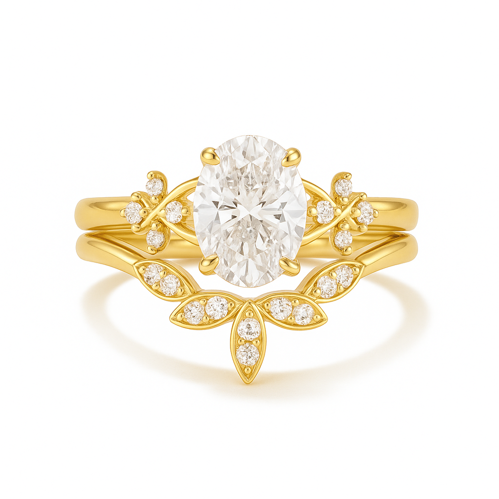 Tier 2: Solid 14K gold (yellow, white, or rose) with a 2 ct moissanite – $1,500