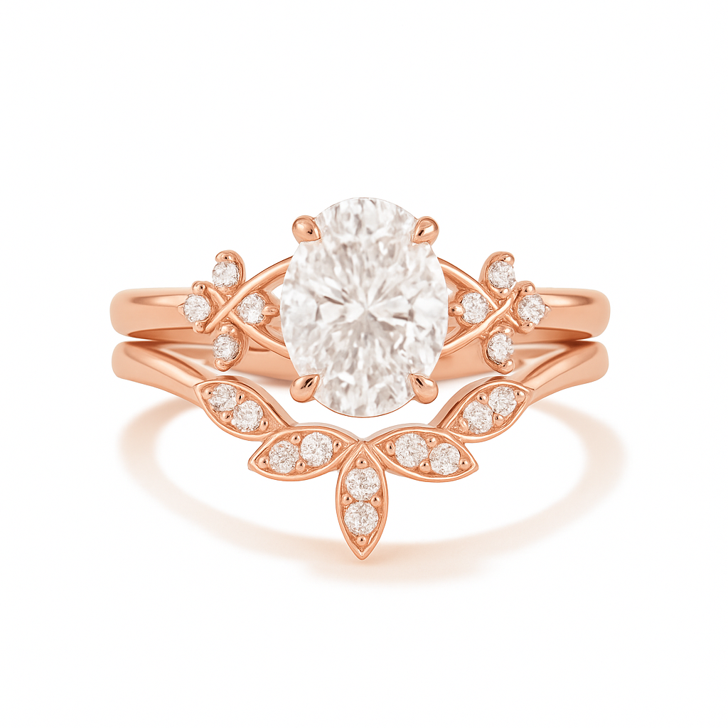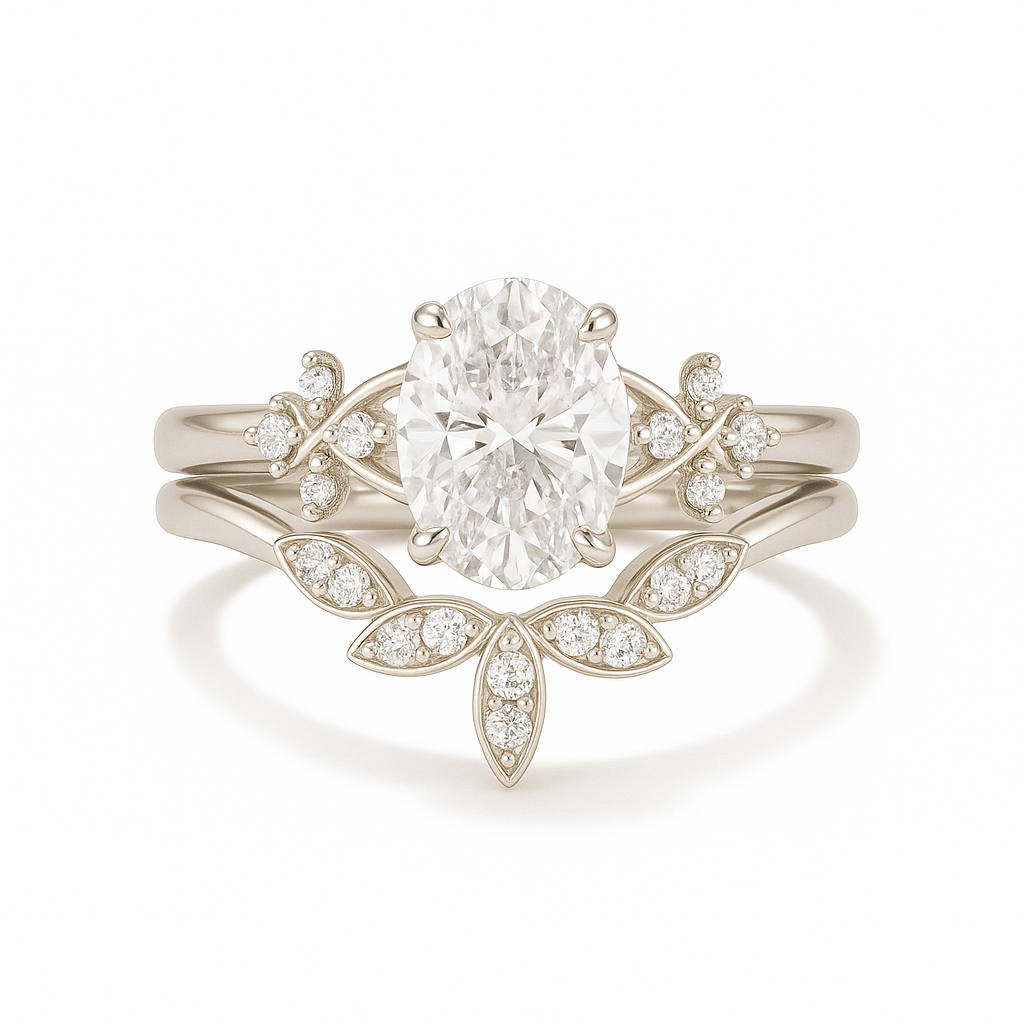 Wedding bands are sold separately, but we offer custom bundle pricing when purchased together. Contact us anytime and we’ll help you find the perfect pairing for Eliora.