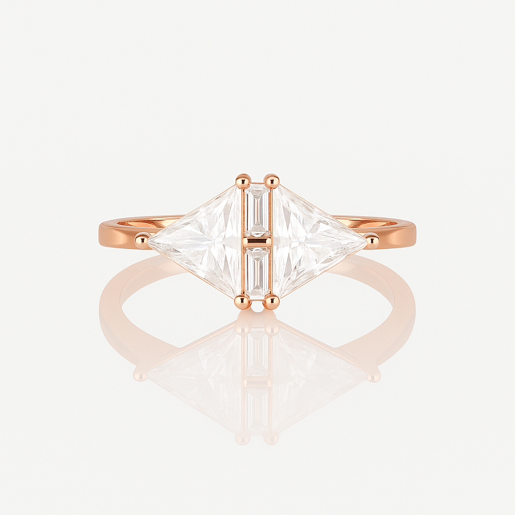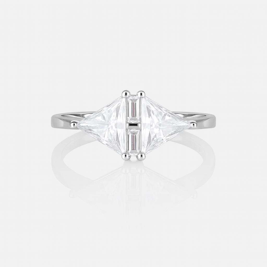 From the moment you slip it on, the Éloane captures the spirit of a first chapter — a quiet yet radiant symbol of love at its earliest bloom. Its Asscher-cut center stone reflects light in mesmerizing steps, a cut first developed in Amsterdam in 1902 for those who desired clarity, symmetry, and understated glamour. The tapered baguette side stones add a touch of Art Deco elegance, echoing the refined geometry of the early 20th century.