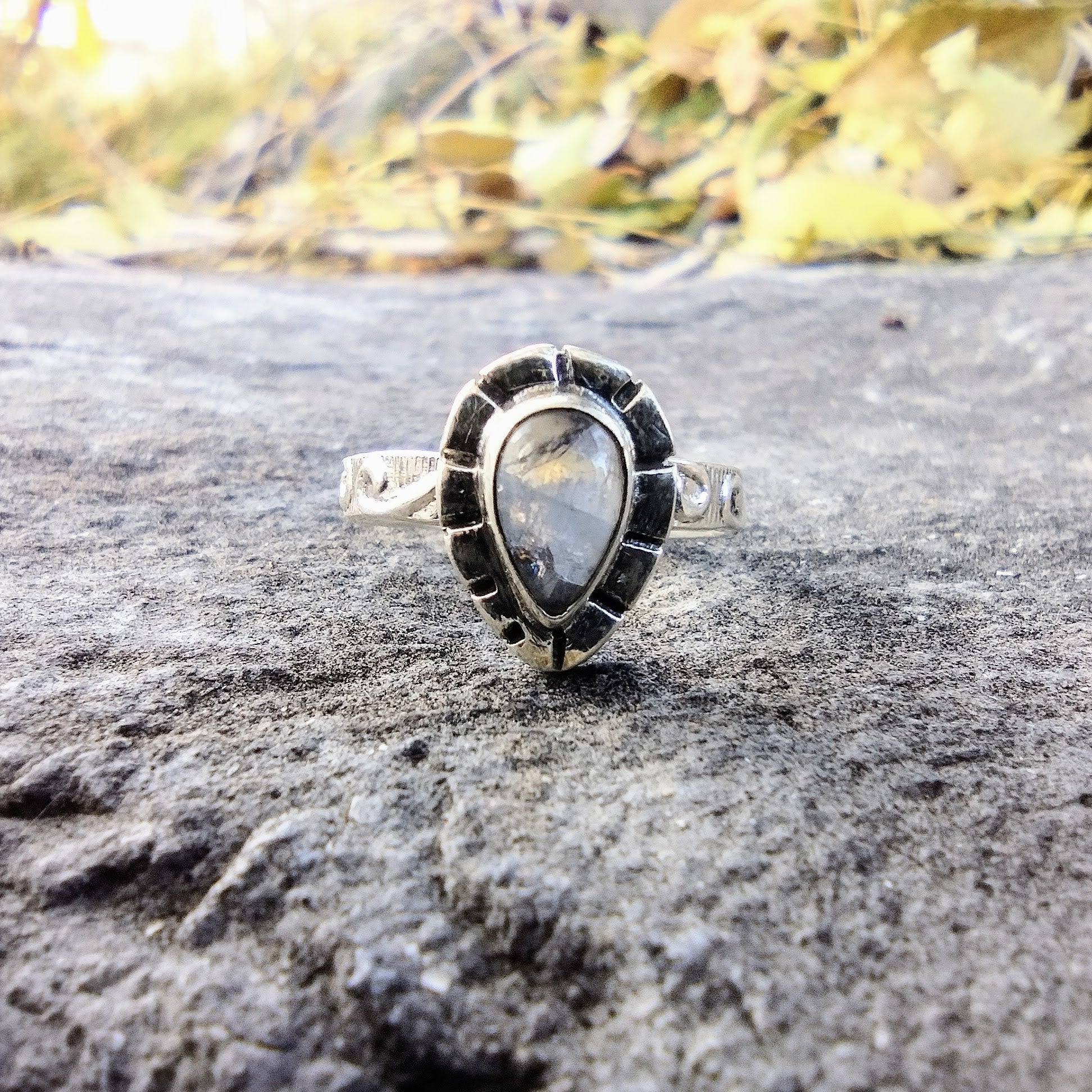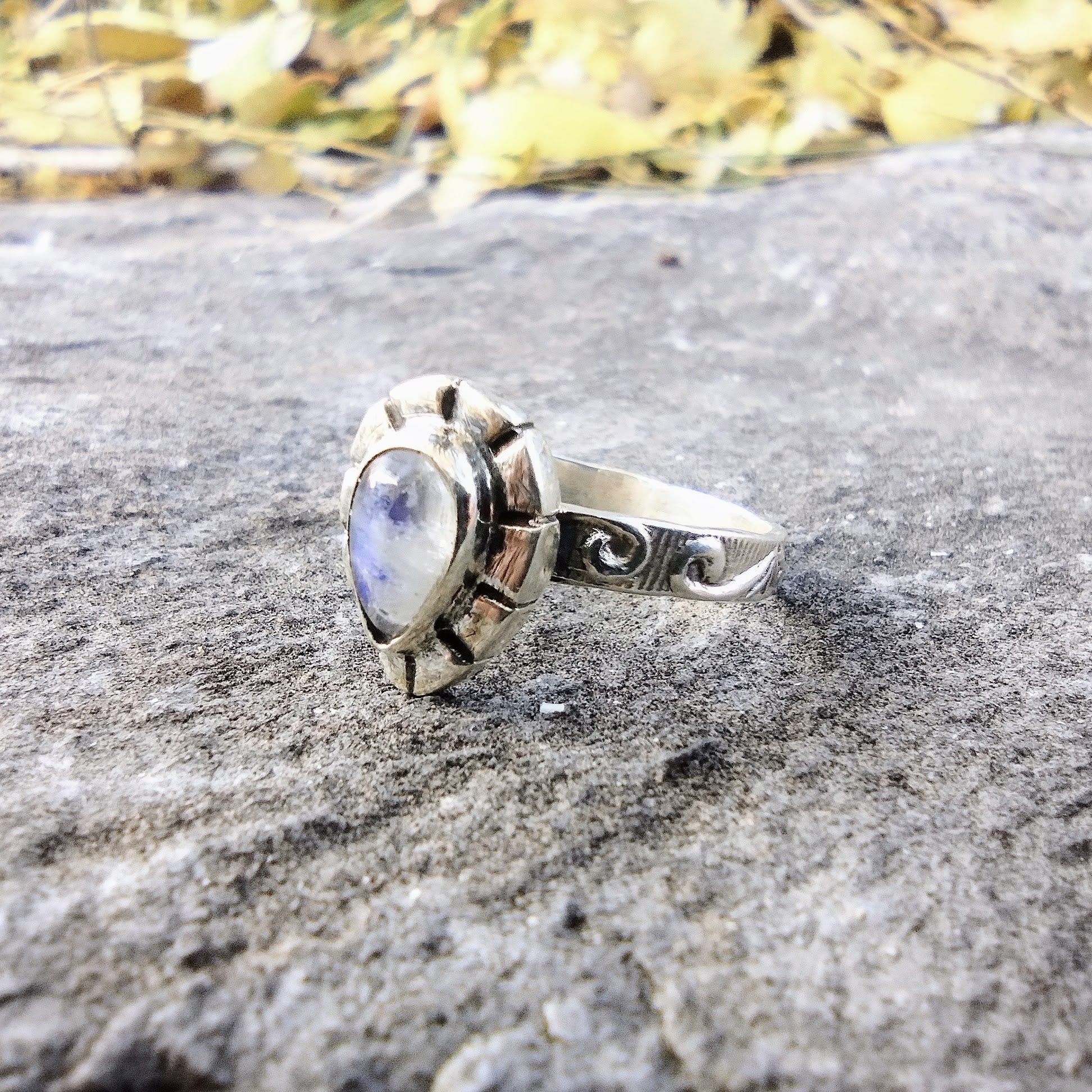 Sterling Silver Flash Rainbow Moonstone Ring Size 7.25