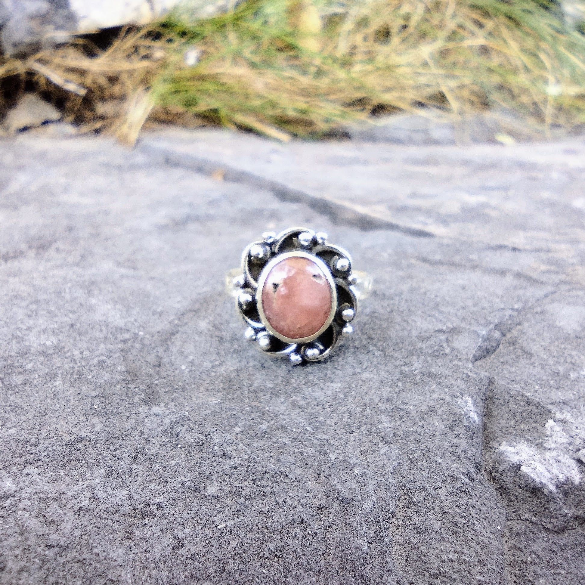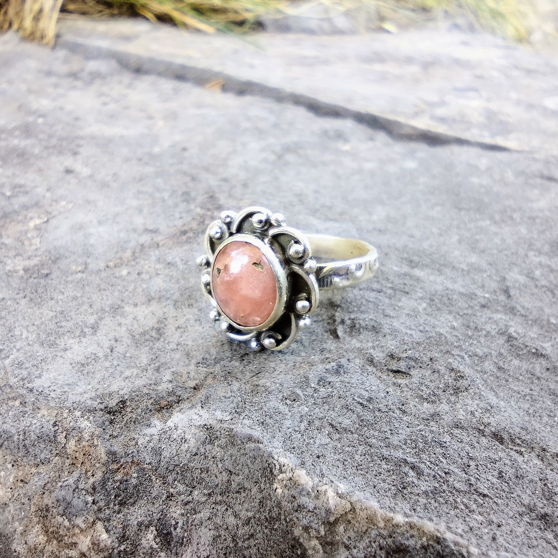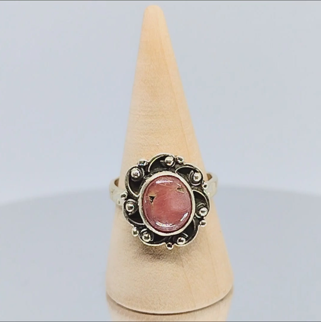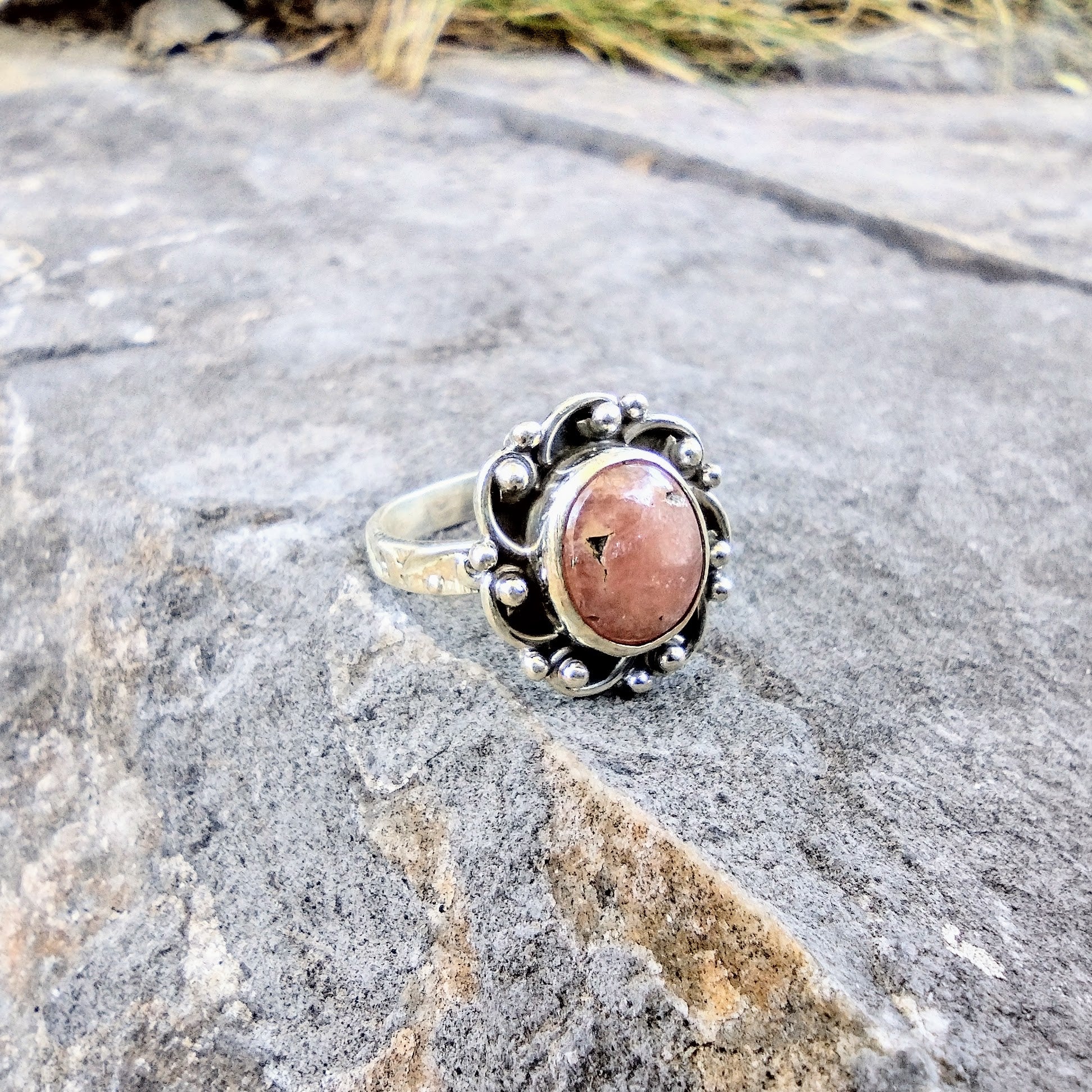 Sterling Silver Peach Sunstone Ring Size 7