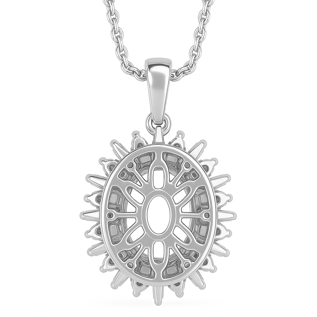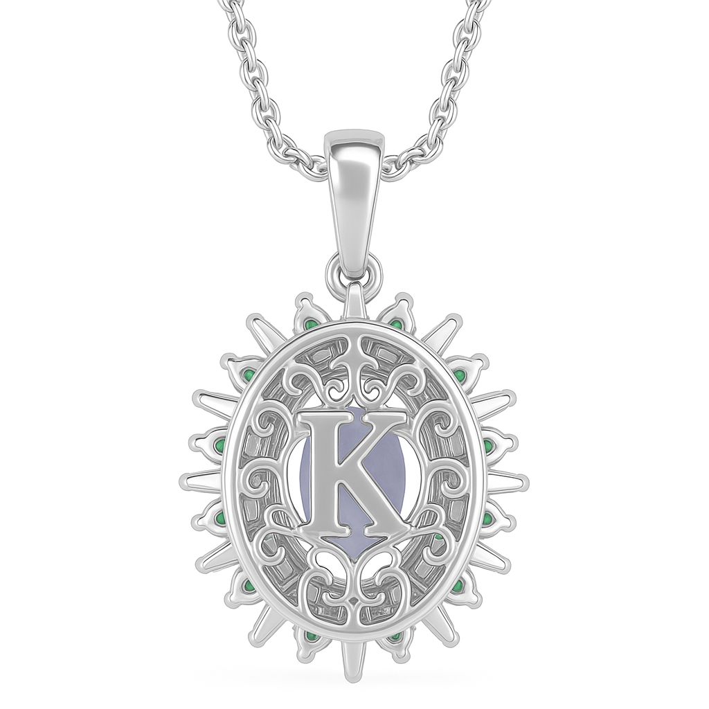 Turn the piece over, and the magic continues. The back reveals an intricate openwork gallery adorned with flowing filigree and a raised capital 'K'—a signature of Klemensen craftsmanship. The see-through design allows light to pass through the gemstone, giving the pendant depth and brilliance from every angle.