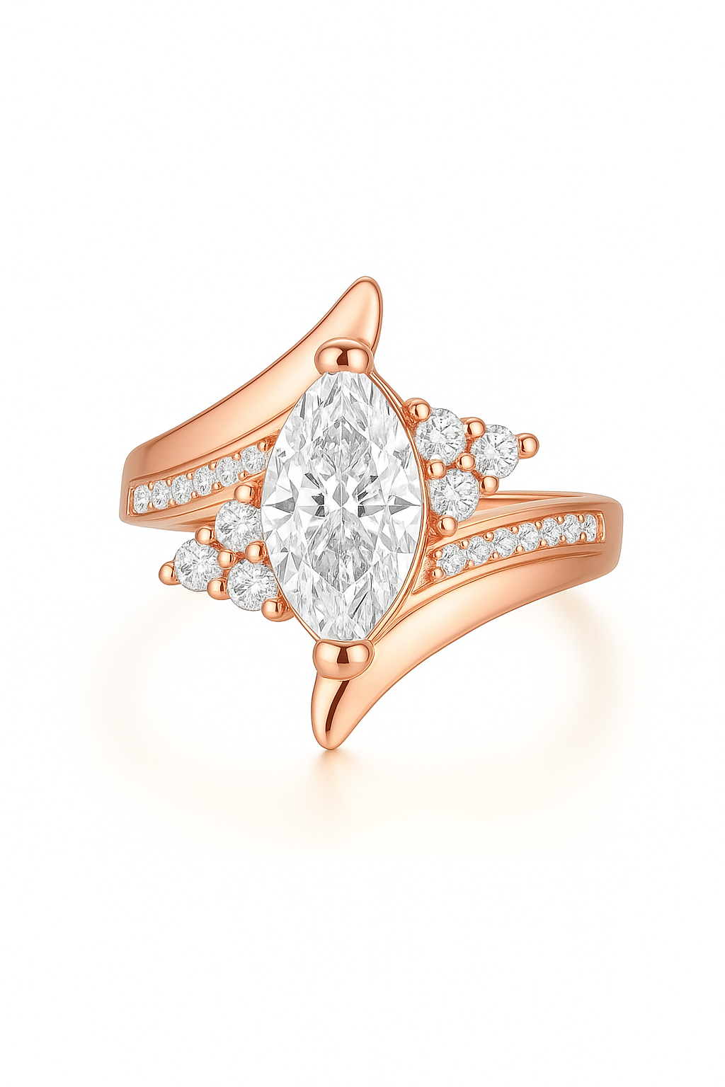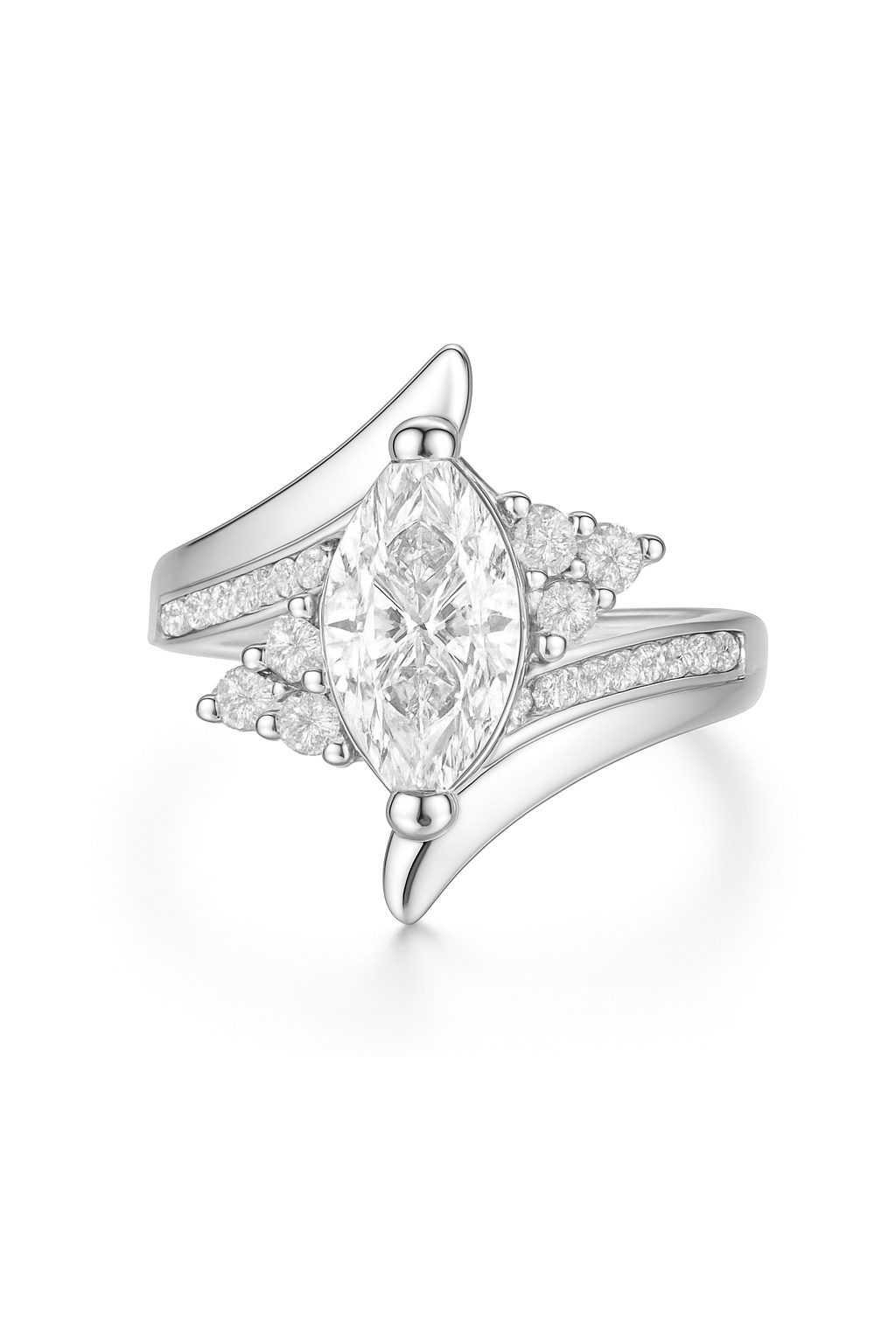 The Marivelle was born from a love story written in light. At its heart rests a marquise-cut diamond — a shape once commissioned by King Louis XV to mirror the smile of his beloved. Its elongated form not only flatters the hand, but also captures light in a way that makes every glance unforgettable.
