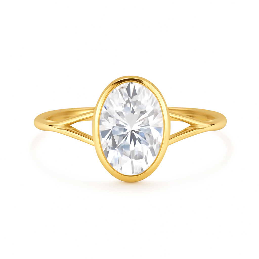 Named after the ancient moon goddess, Selune glows with soft radiance and quiet strength. This oval-cut solitaire is wrapped in a smooth bezel and cradled by a split band, creating a look that’s modern, magical, and unmistakably yours. The simplicity of its design makes it feel timeless, while the thoughtful details—like the clean silhouette and secure setting—make it perfect for daily wear, even during your most ambitious seasons of life.
